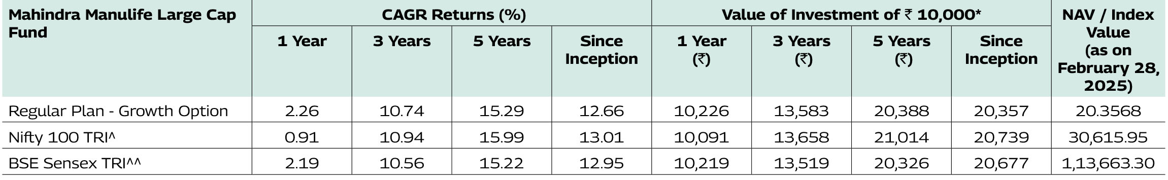 Past performance may or may not be sustained in future and should not be used as a basis of comparison with other investments. The performance details provided above are of Growth Option under Regular Plan. Different Plans i.e Regular Plan and Direct Plan under the scheme has different expense structure. Ms. Fatema Pacha manages 8 schemes of Mahindra Manulife Mutual Fund. The performance data for the schemes which have not completed one year has not been provided.