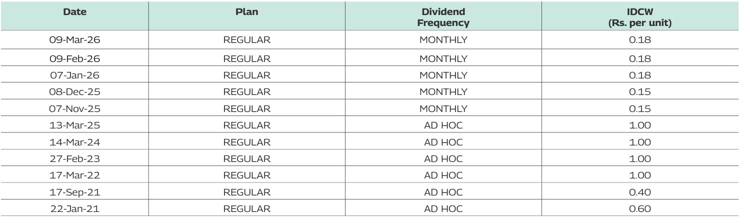 Pursuant to payment of IDCW, the NAV of the IDCW Option(s) of the Scheme/Plan(s) falls to the extent of payout and statutory levy, if any. Past performance may or may not be sustained in future and should not