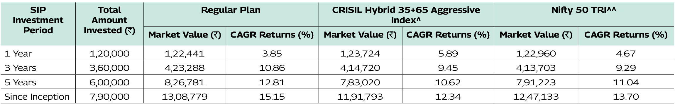 Since inception returns of the scheme is calculated on face value of Rs. 10 invested at inception. The performance details provided above are of Growth Option under Regular Plan.