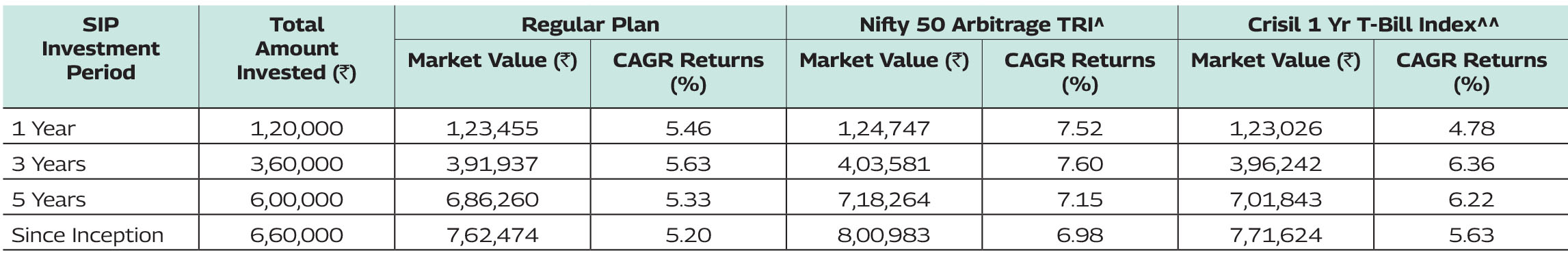 Past performance may or may not be sustained in future and should not be used as a basis of comparison with other investments. Since inception returns of the scheme is calculated on face value of Rs. 10 invested at inception. The performance details provided above are of Growth Option under Regular Plan. Different Plans i.e Regular Plan and Direct Plan under the scheme has different expense structure. *#Based on standard investment of Rs. 10,000 made at the beginning of the relevant period. Mr. Navin Matta is managing this scheme since October 24, 2024. Mr. Mitul Doshi is managing this scheme since May 02, 2025.