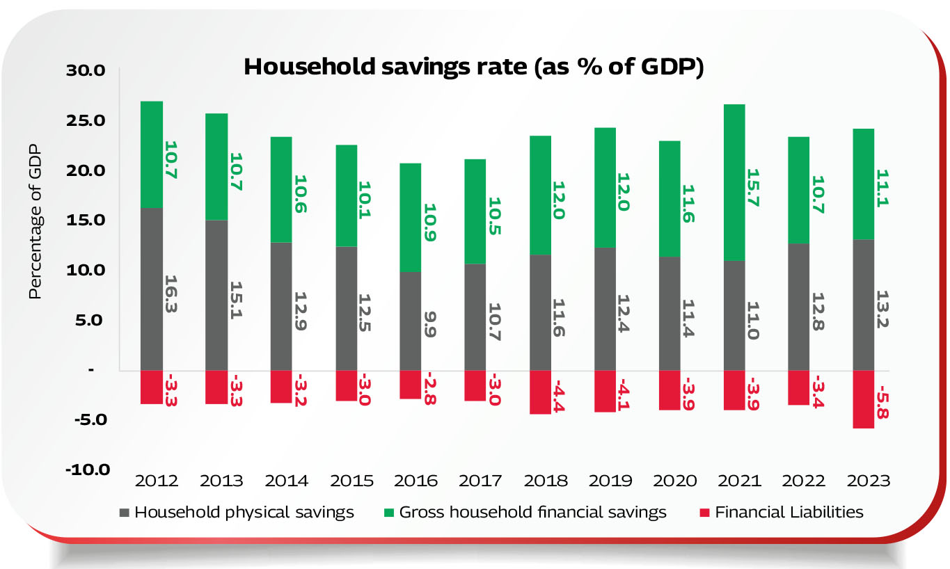 Note: The above graph has been used only to explain the concept of Household savings pattern in India over a period of time and should not be construed as a recommendation from Mahindra Manulife Mutual Fund / Mahindra Manulife Investment Management Private Limited.
