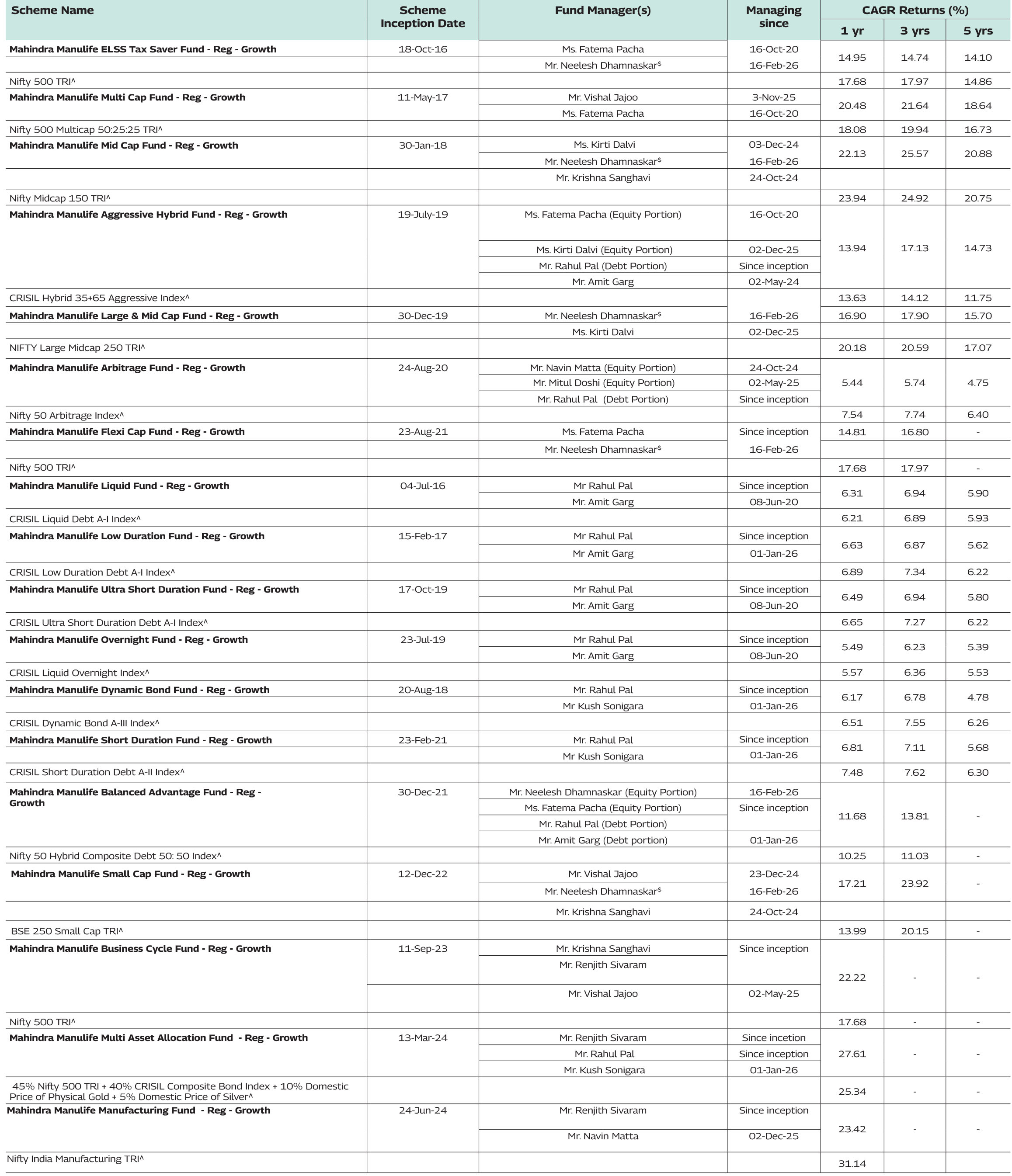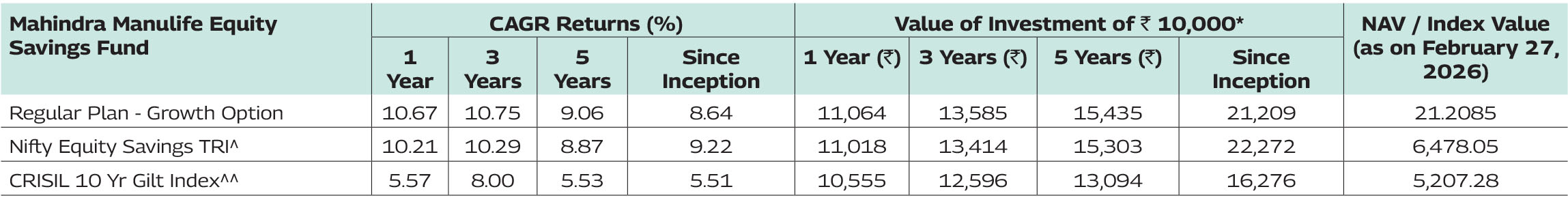 Note: As February 28, 2026 was a non-business days, the schemes returns disclosed are as on February 27, 2026, except for Mahindra Manulife Liquid Fund and Mahindra Manulife Overnight Fund which is as of February 28, 2026.
