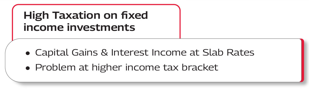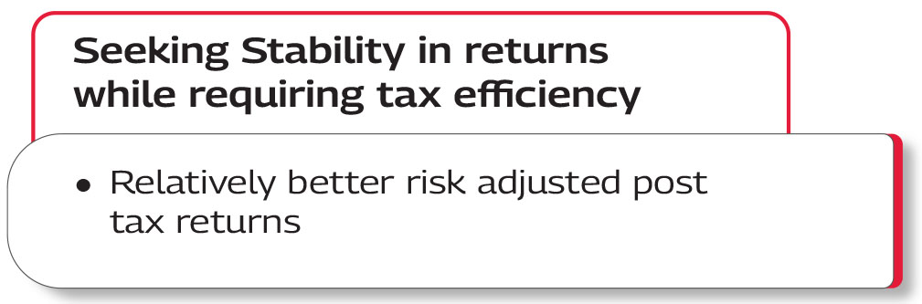 #In comparison to Debt/Fixed Income mutual fund scheme(s) {categorised as Specified Mutual Funds} / instruments and applicable for the holding period of > 24 months, as per extant income tax laws. Please refer Scheme Information Document for more details. Investors are advised to consult their professional tax advisors before taking investment decision.