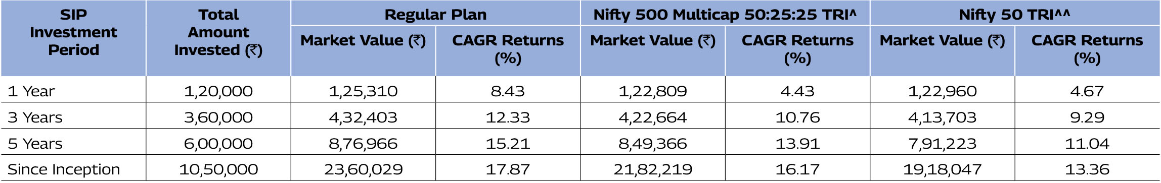 considered. CAGR Returns (%) are computed after accounting for the cash flow by using the XIRR method (investment internal rate of return).
