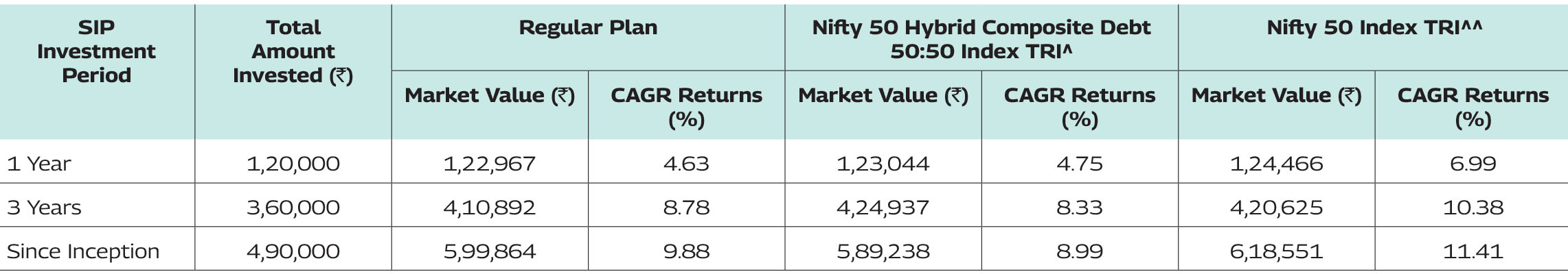 | Sector | MMBAF* | Nifty 50 Hybrid Composite Debt 50: 50 TRI |
