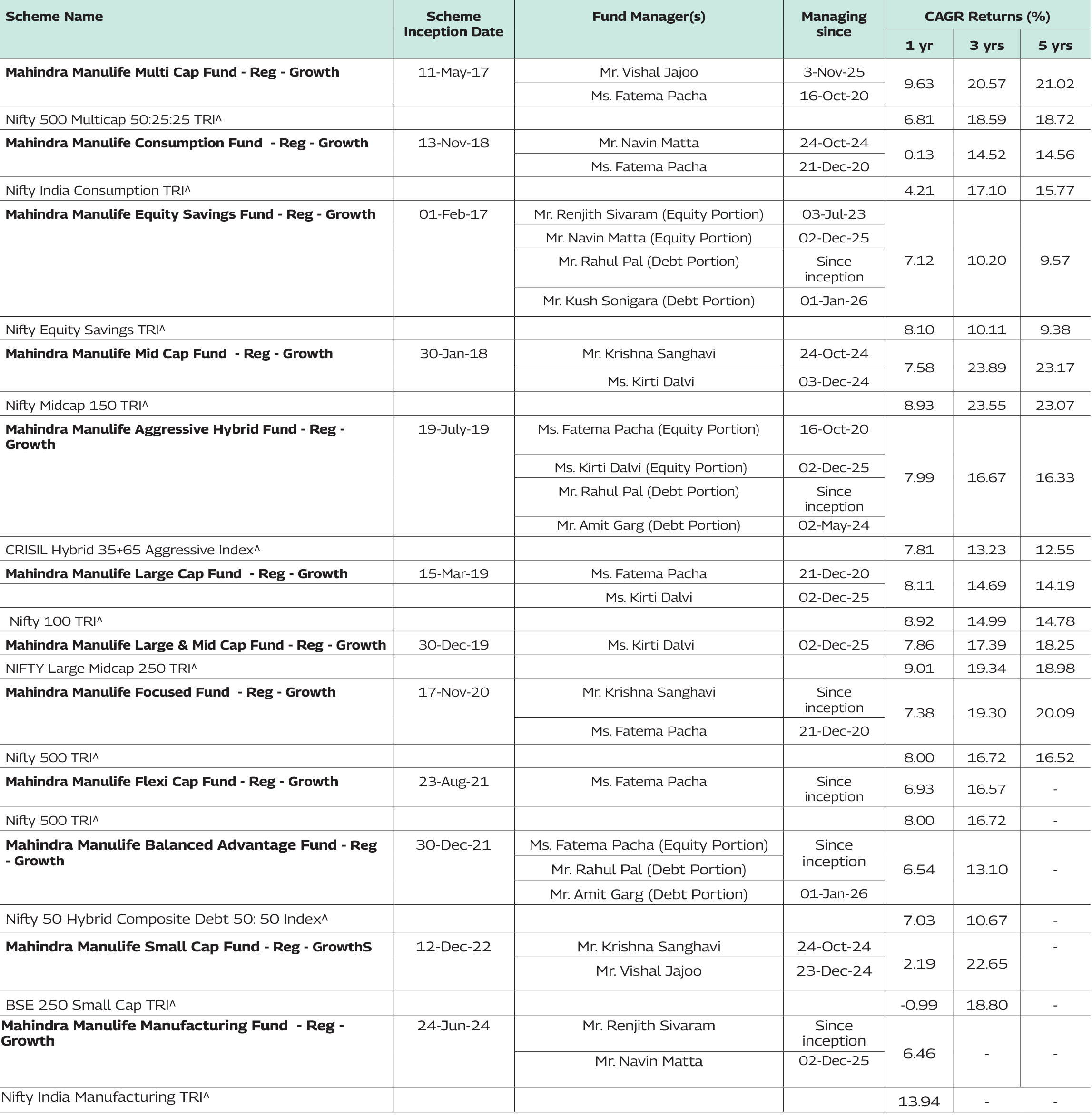 Note: As January 31, 2026 was a non-business days, the schemes returns disclosed are as on January 30, 2026, except for Mahindra Manulife Liquid Fund and Mahindra Manulife
