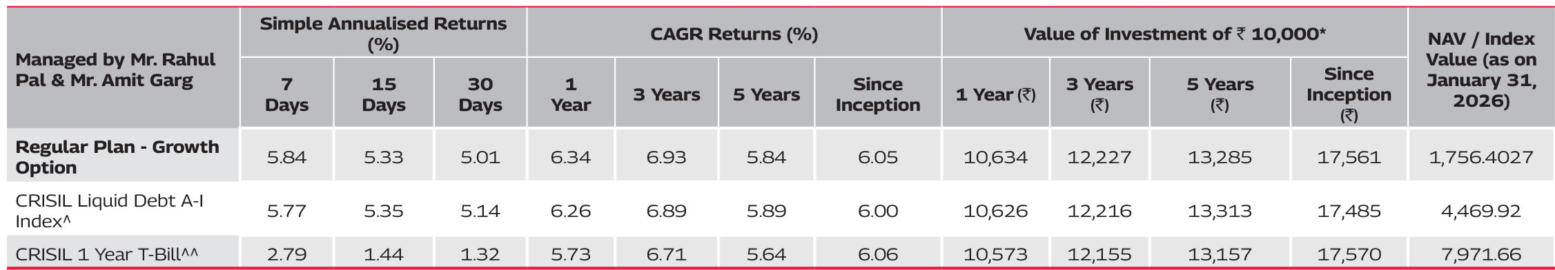 Benchmark: CRISIL Liquid Debt A-I Index| Investor Exit upon subscription | Exit Load as % of redemption proceed |