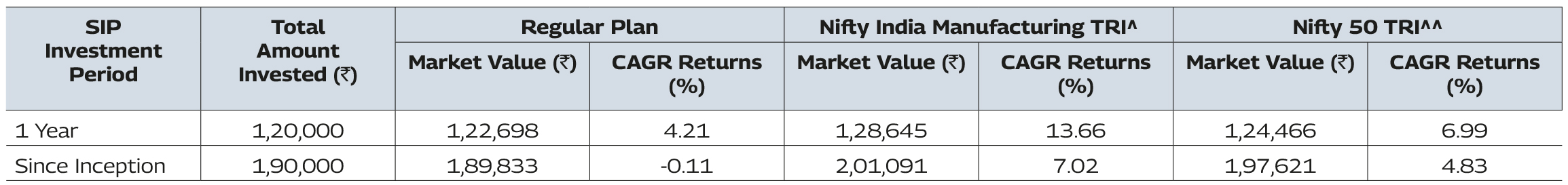 | Sector | MMMF* | Nifty India Manufacturing TRI |