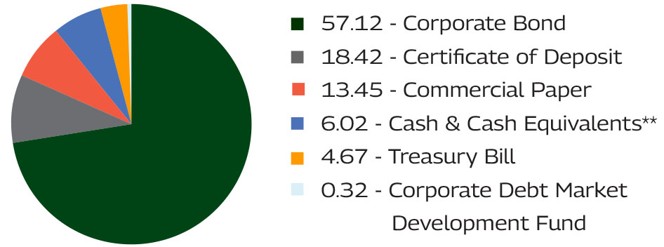 * Includes securitized debt up to 30% of the net assets of the Scheme and structured