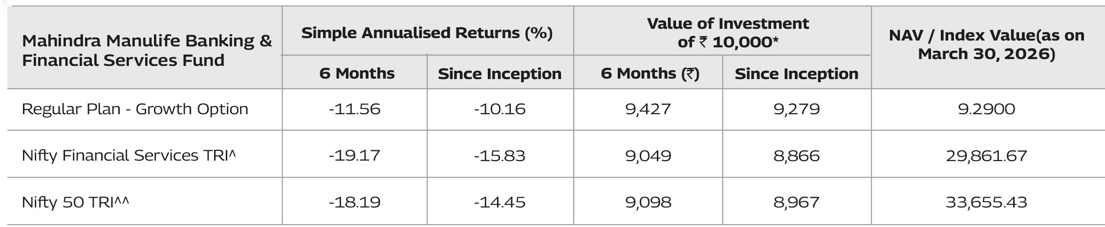 Note - As March 31, 2026 was a non-business days, the schemes returns disclosed are as on March 31, 2026, except for Mahindra Manulife Liquid Fund and Mahindra Manulife Overnight Fund which is as of March 31, 2026.