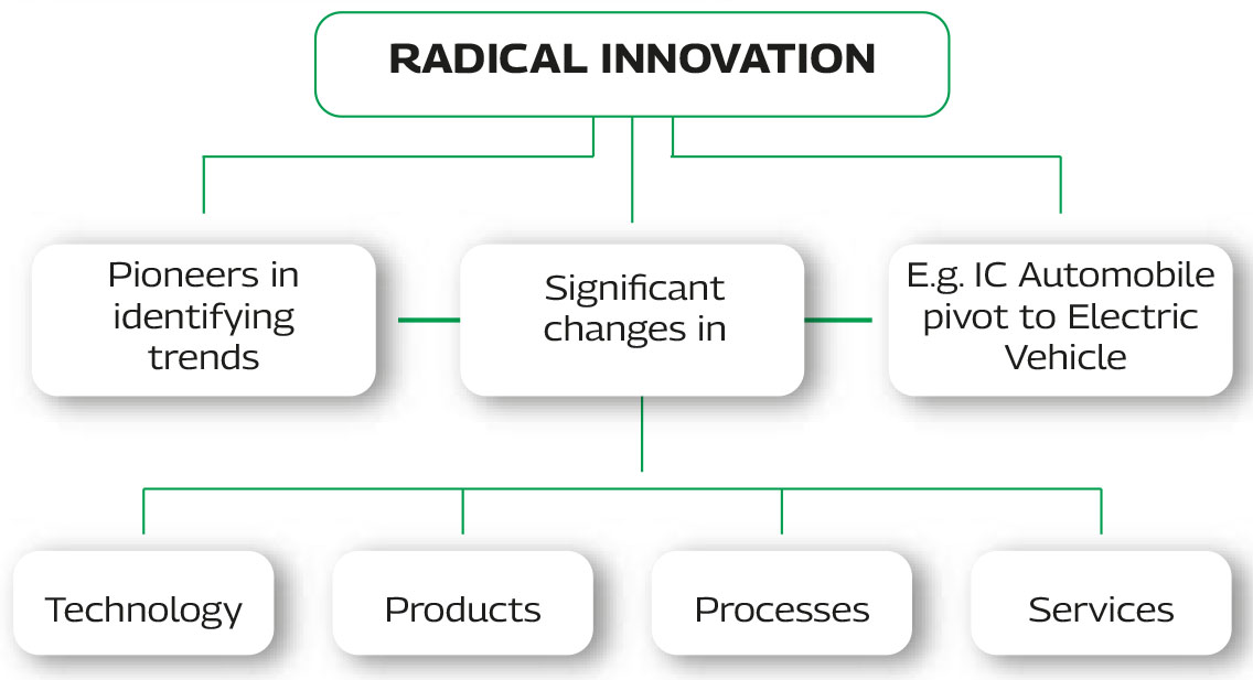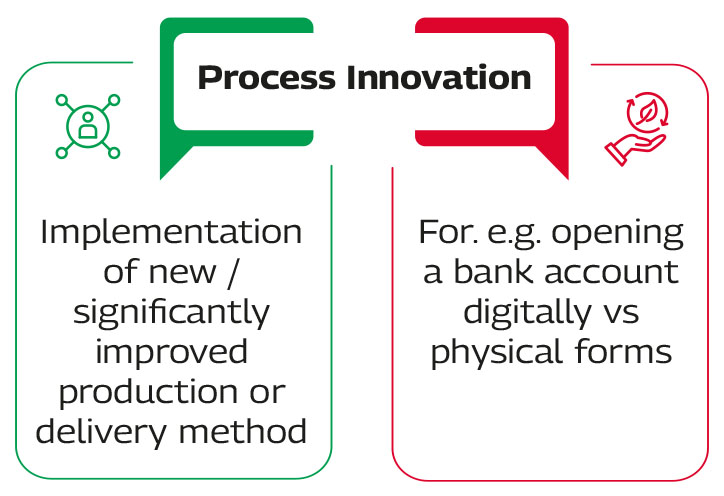 Innovations can be categorized into Product, Process and Service Innovation depending on the key area/technology that is undergoing change.