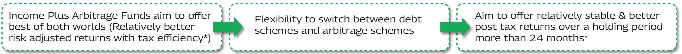 #In comparison to Debt/Fixed Income mutual fund scheme(s) {categorised as Specified Mutual Funds} / instruments and applicable for the holding period of > 24 months, as per extant income tax laws. Please refer Scheme Information Document for more details. Investors are advised to consult their professional tax advisors before taking investment decision.