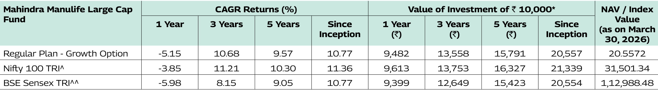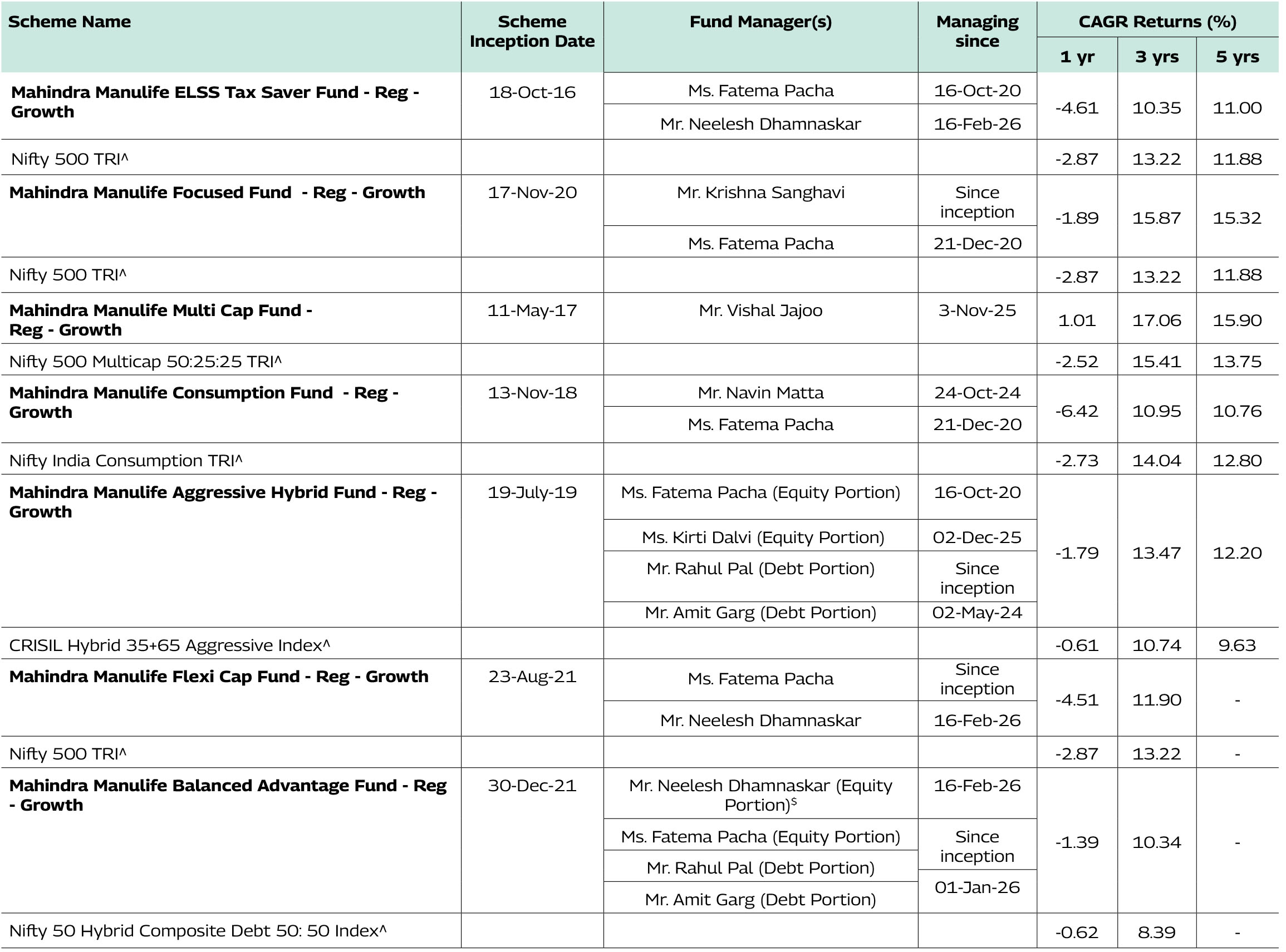 Note: As March 31, 2026 was a non-business days, the schemes returns disclosed are as on March 31, 2026, except for Mahindra Manulife Liquid Fund and Mahindra Manulife Overnight Fund which is