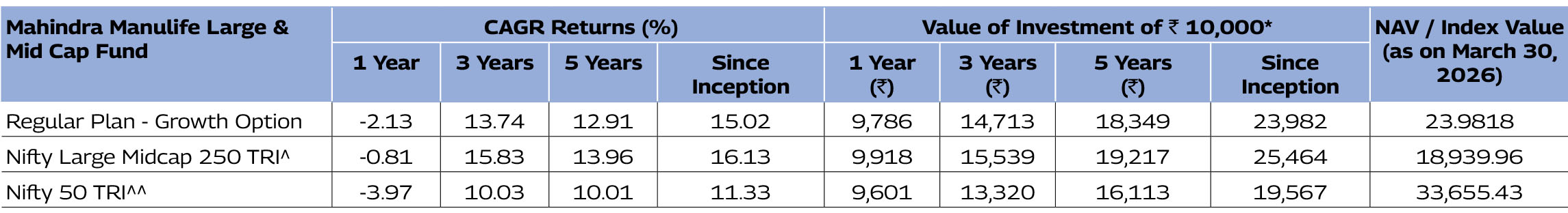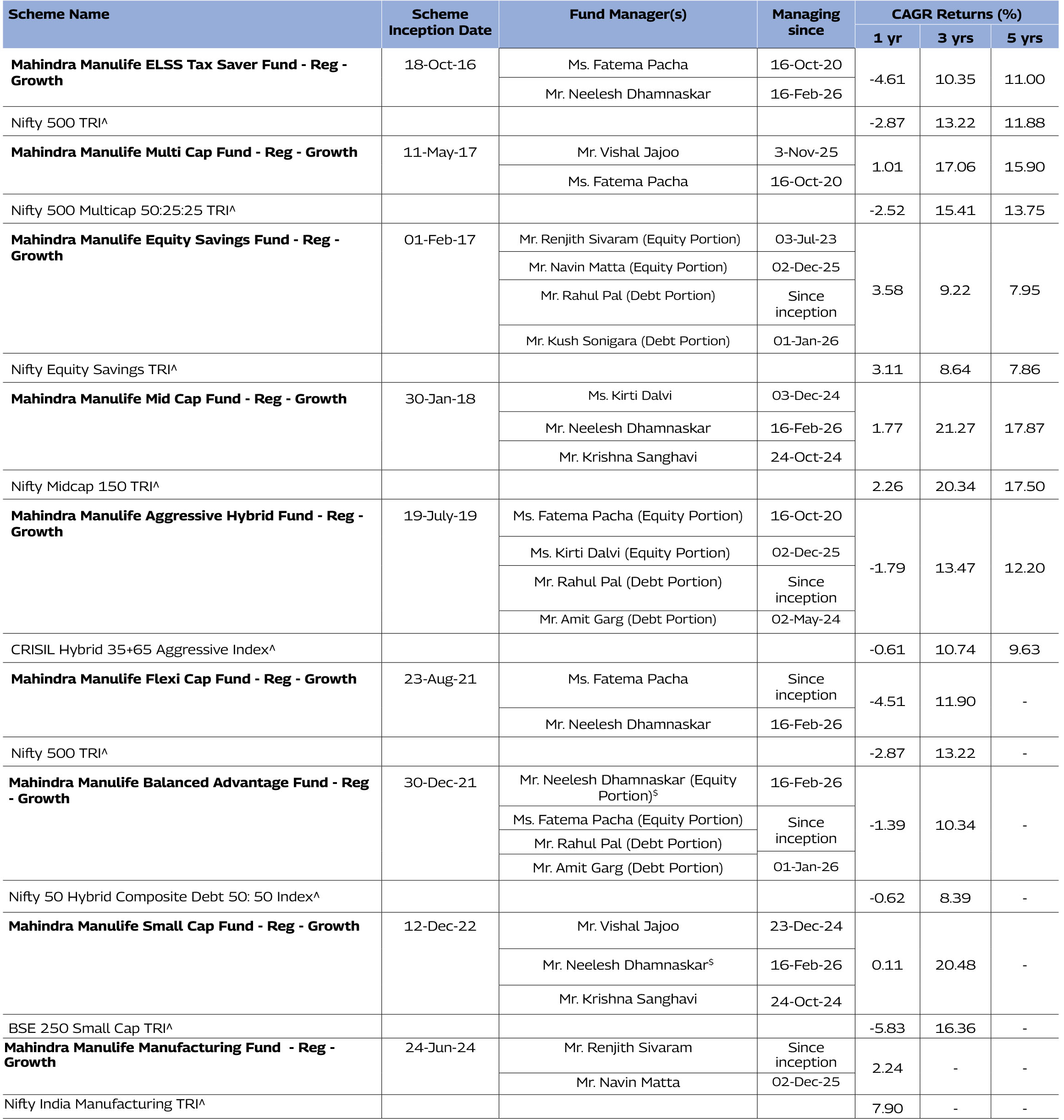 Note: As March 31, 2026 was a non-business days, the schemes returns disclosed are as on March 31, 2026, except for Mahindra Manulife Liquid Fund and Mahindra Manulife Overnight