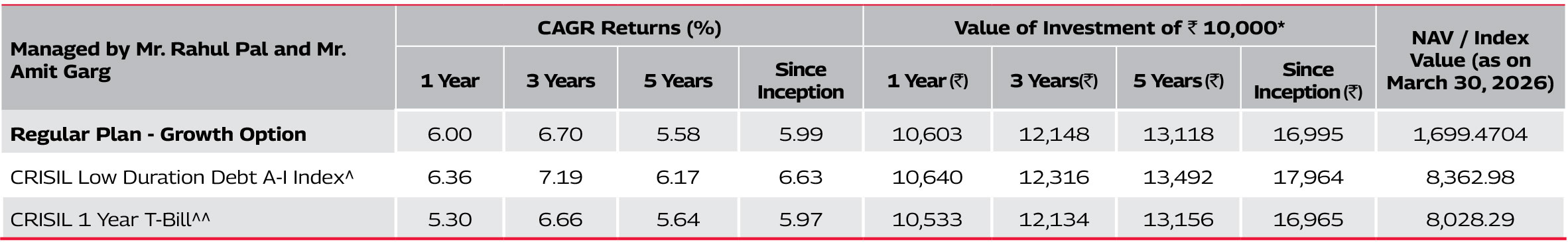 scheme has different expense structure. *Based on standard investment of Rs. 10,000 made at the beginning of the relevant period. Mr. Amit Garg is managing this fund since January 01, 2026.