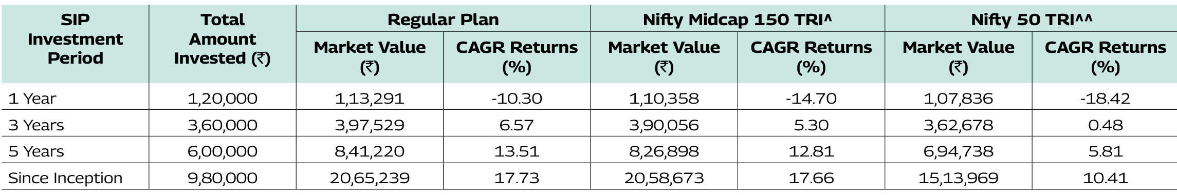 Past performance may or may not be sustained in future and should not be used as a basis of comparison with other investments. Returns greater than 1 year period are compounded annualized. For SIP returns, monthly investment of equal amounts invested on the 1st business day