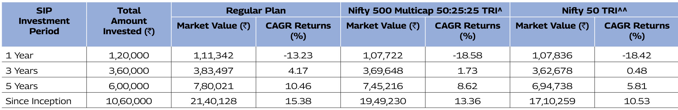 Past performance may or may not be sustained in future and should not be used as a basis of comparison with other investments. Returns greater than 1 year period are compounded annualized. For SIP returns, monthly investment of equal amounts invested on the 1st business day of every month has been