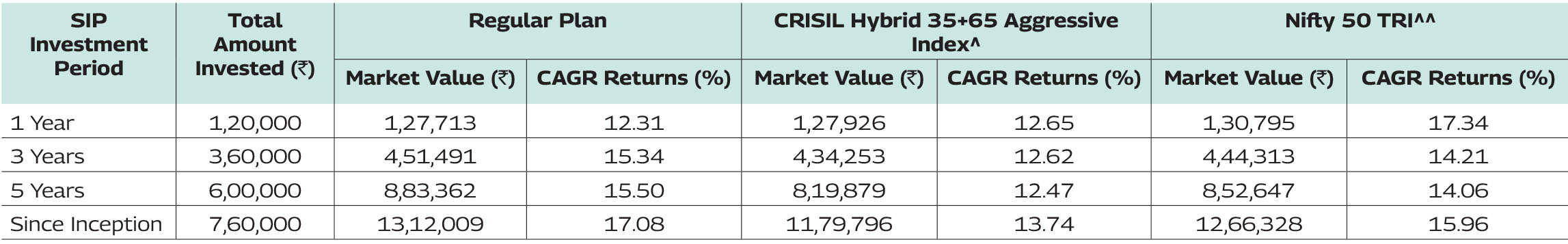 Since inception returns of the scheme is calculated on face value of Rs. 10 invested at inception. The performance details provided above are of Growth Option under Regular Plan. Different Plans i.e Regular Plan and Direct Plan under the scheme has different expense structure. *Based on standard investment of Rs. 10,000 made at the beginning of the relevant period. Ms. Fatema Pacha is managing this scheme since October 16, 2020. Mr. Manish Lodha is managing this fund since December 21, 2020. Mr. Amit Garg is managing the scheme since May 02, 2024.