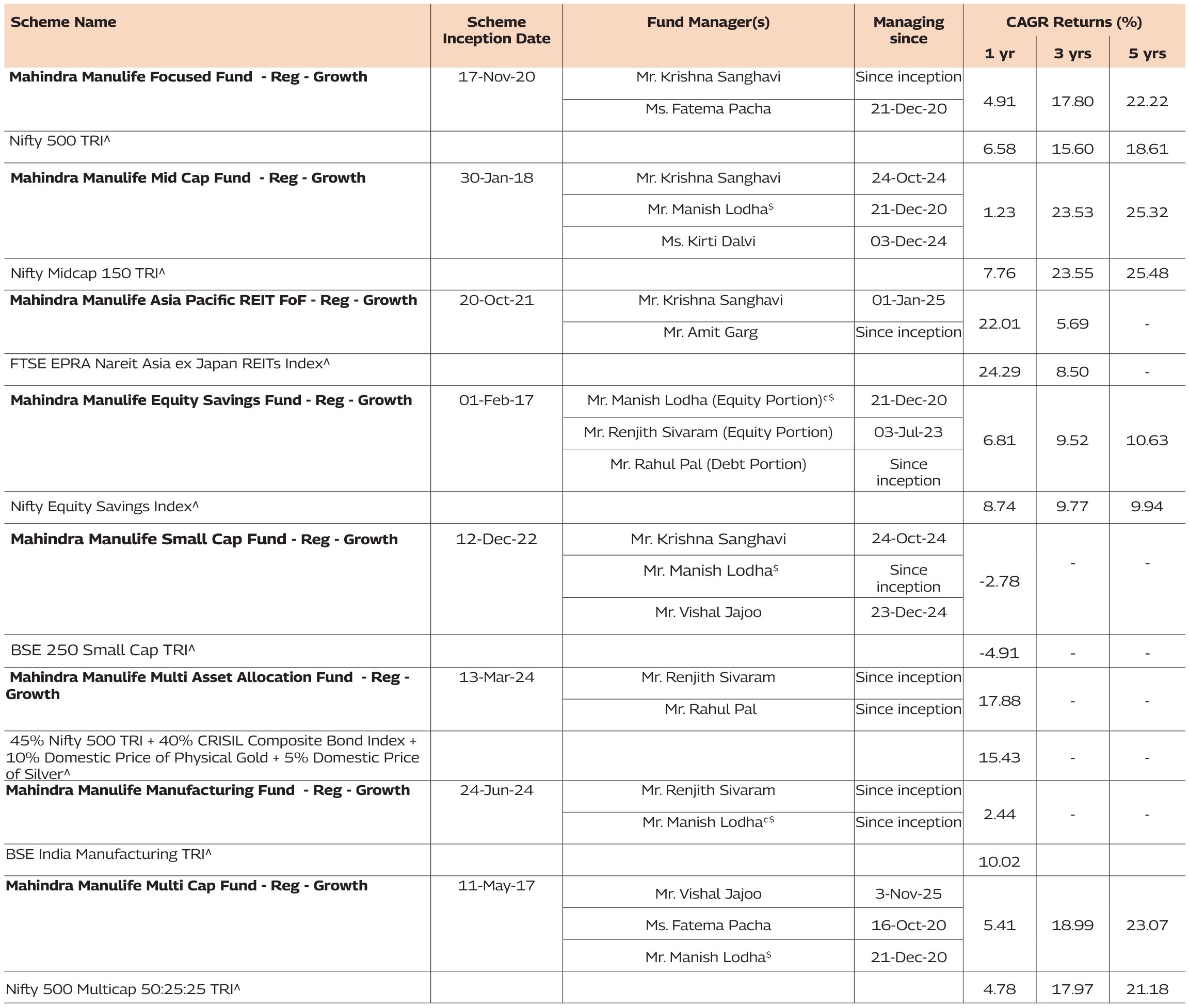 Note: As November 29 & 30, 2025 was a non-business days, the schemes returns disclosed are as on November 28, 2025, except for Mahindra Manulife Liquid Fund and Mahindra Manulife Overnight Fund which is as of November 30, 2025.