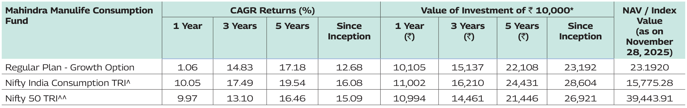 | Sector | MMCF* | Nifty India Consumption TRI |