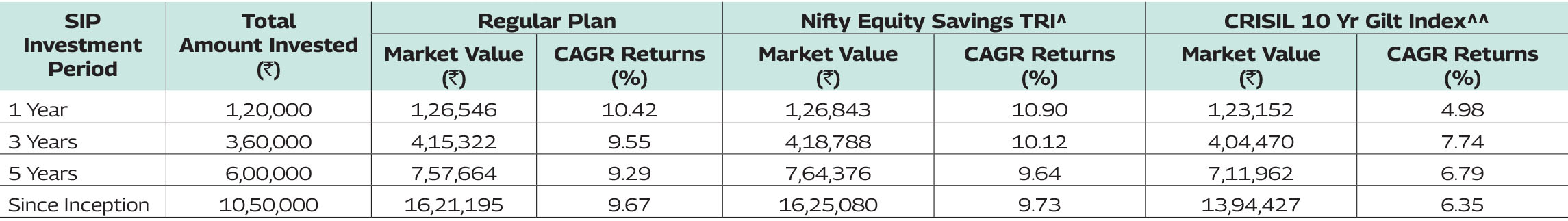 Since inception returns of the scheme is calculated on face value of Rs. 10 invested at inception. The performance details provided above are of Growth Option under Regular Plan. Different Plans i.e Regular Plan and Direct Plan under the scheme has different expense structure. *Based on standard investment of Rs. 10,000 made at the beginning of the relevant period. Mr. Manish Lodha is managing this fund since December 21, 2020. Mr. Renjith Sivaram is managing this fund since July 03, 2023.