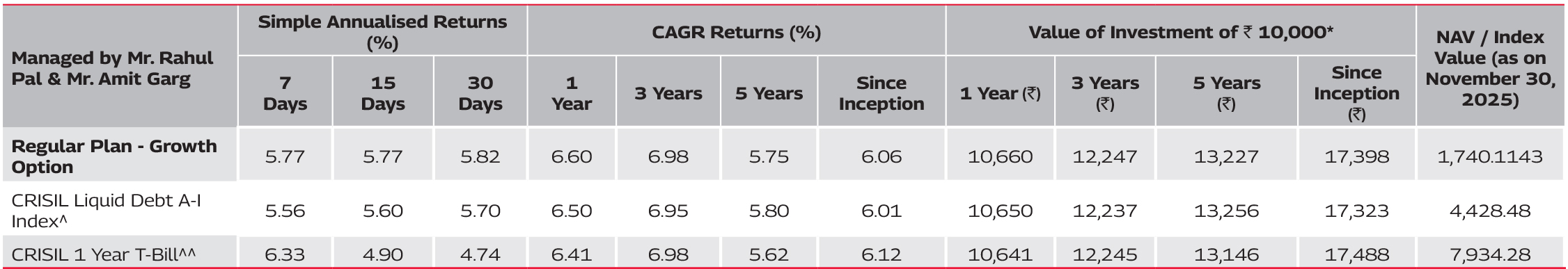 Benchmark: CRISIL Liquid Debt A-I Index| Investor Exit upon subscription | Exit Load as % of redemption proceed |