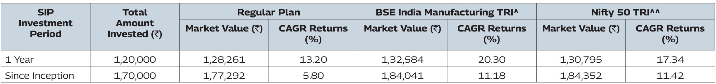 | Sector | MMMF* | BSE India Manufacturing TRI |