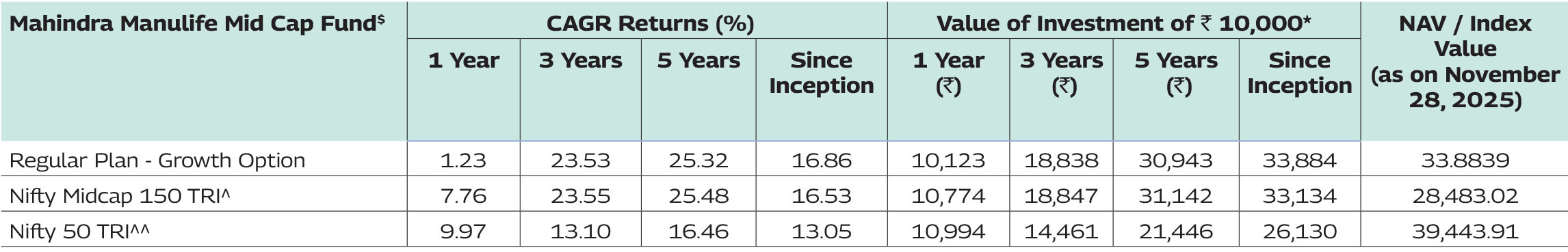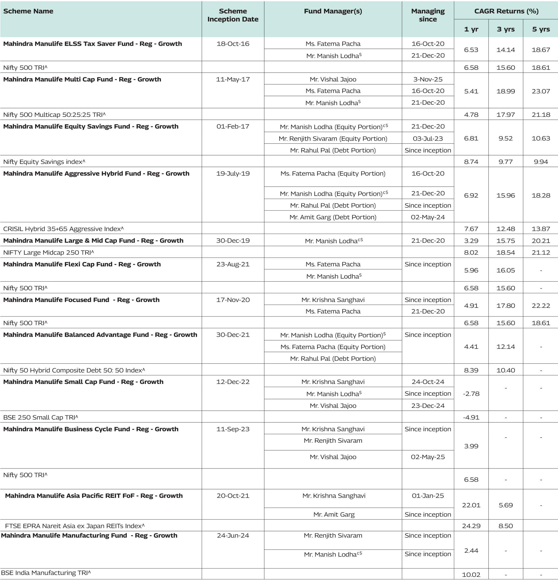 Note: As November 29 & 30, 2025 was a non-business days, the schemes returns disclosed are as on November 28, 2025, except for Mahindra Manulife Liquid Fund and Mahindra Manulife Overnight Fund which is as of November 30, 2025.