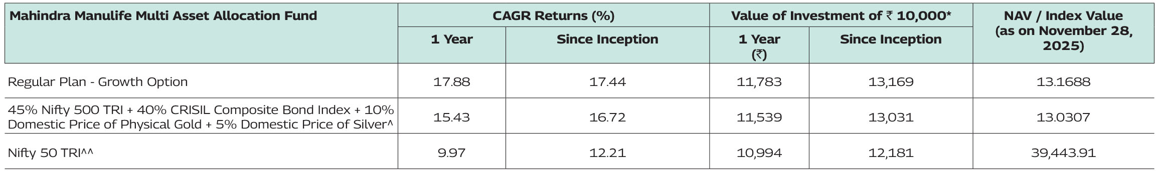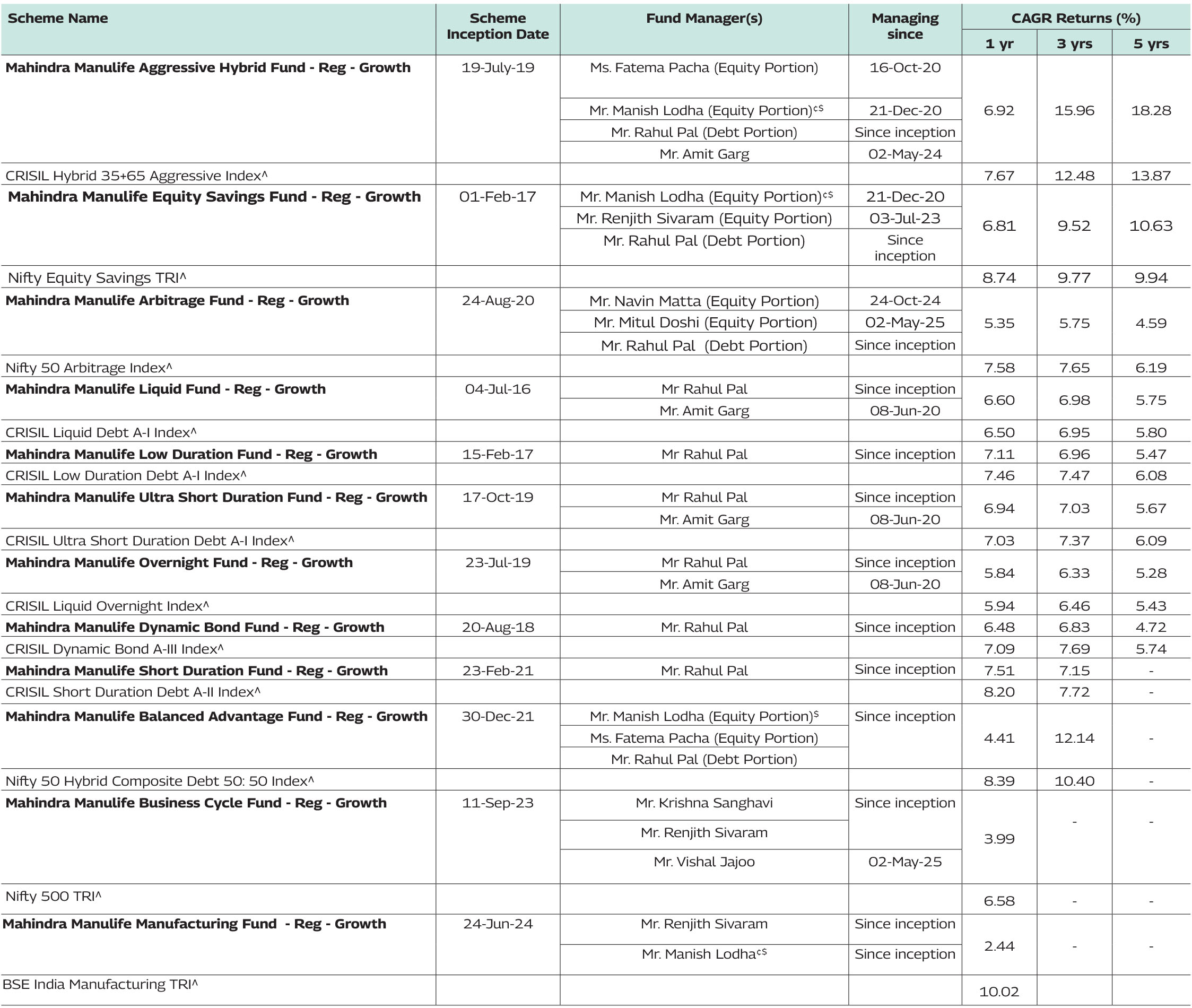 Note: As November 29 & 30, 2025 was a non-business days, the schemes returns disclosed are as on November 28, 2025, except for Mahindra Manulife Liquid Fund and Mahindra Manulife Overnight Fund which is as of November 30, 2025.