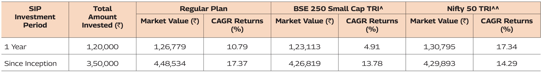 Past performance may or may not be sustained in future and should not be used as a basis of comparison with other investments. Returns greater than 1 year period are compounded annualized. For SIP returns, monthly investment of equal amounts invested on the 1st business day of every month has been considered. CAGR Returns (%) are computed after accounting for the cash flow by using the XIRR method (investment internal rate of return).
