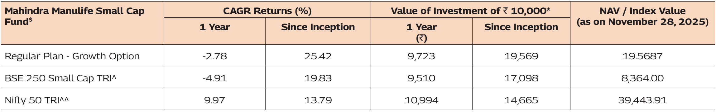Note: As November 29 & 30, 2025 was a non-business days, the schemes returns disclosed are as on November 28, 2025, except for Mahindra Manulife Liquid Fund and Mahindra Manulife Overnight