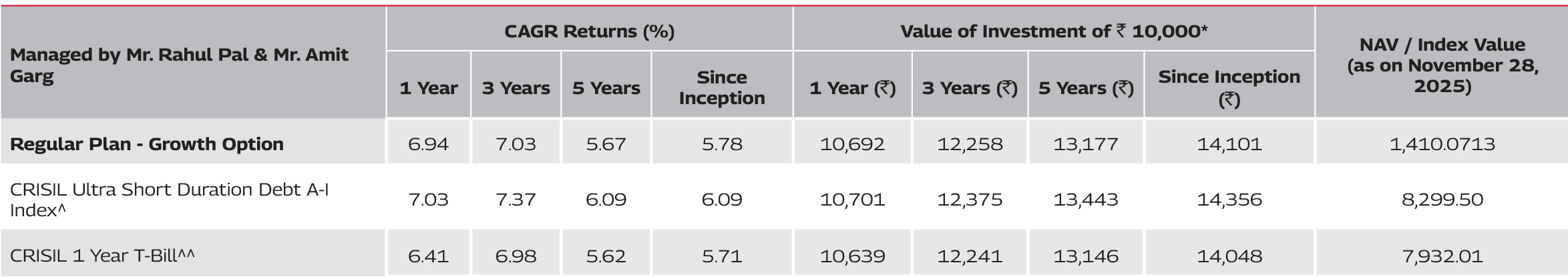 Since inception returns of the scheme is calculated on face value of Rs. 1,000 invested at inception. The performance details provided above are of Growth Option under Regular Plan. Different Plans i.e Regular Plan and Direct Plan under the scheme has different expense structure. *Based on standard investment of Rs. 10,000 made at the beginning of the relevant period. Mr Amit Garg is managing this scheme since June 8, 2020.