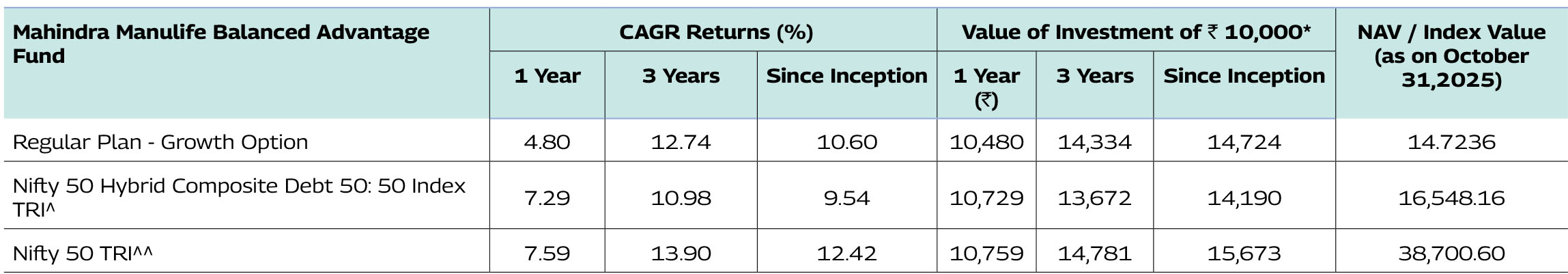 | Sector | MMBAF* | Nifty 50 Hybrid Composite Debt 50: 50 TRI |