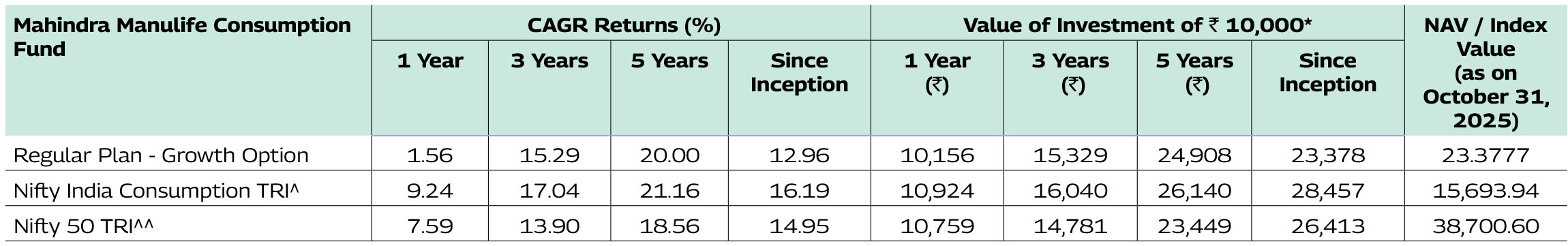 | Sector | MMCF* | Nifty India Consumption TRI |