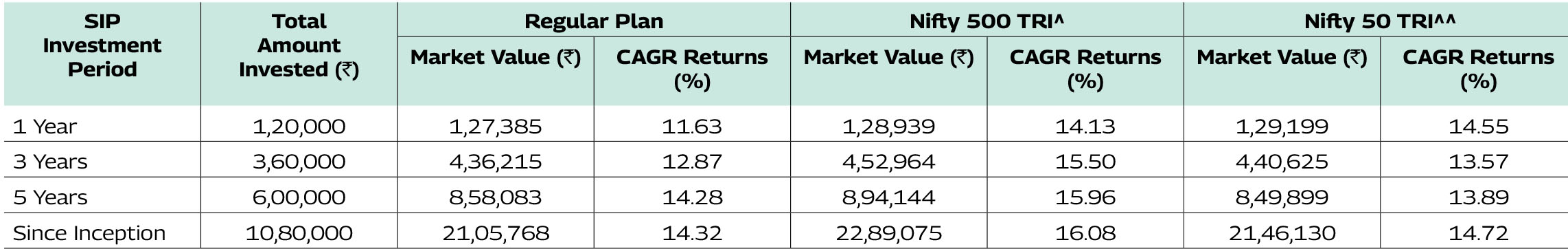 Returns greater than 1 year period are compounded annualized. For SIP returns, monthly investment of equal amounts invested on the 1st business day