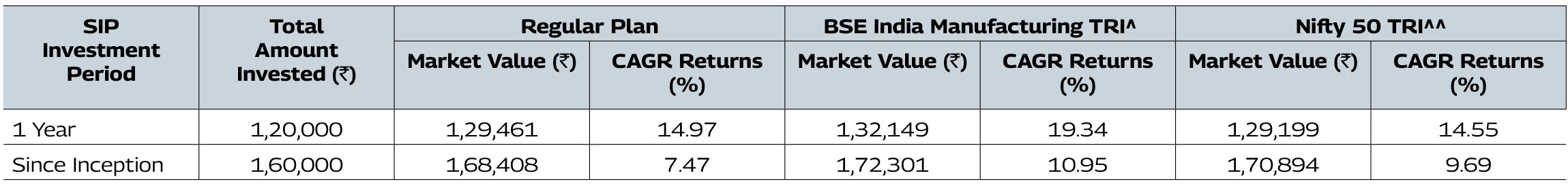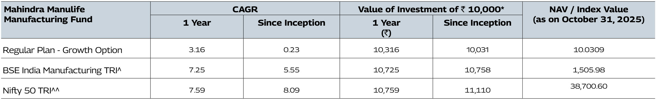 | Sector | MMMF* | BSE India Manufacturing TRI |