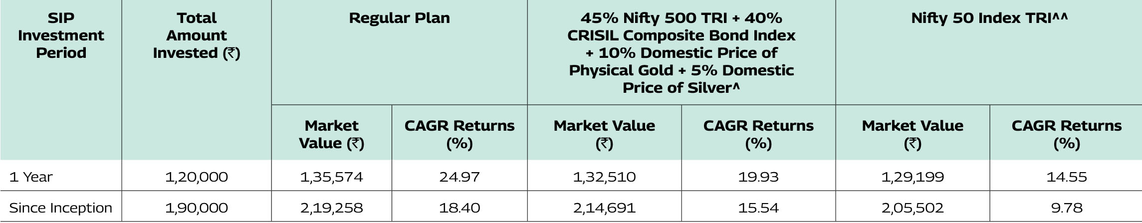 ![]() | Diversified Portfolio that aims to combine stability of fixed income, growth potential of equity and tactical exposure to gold/silver |