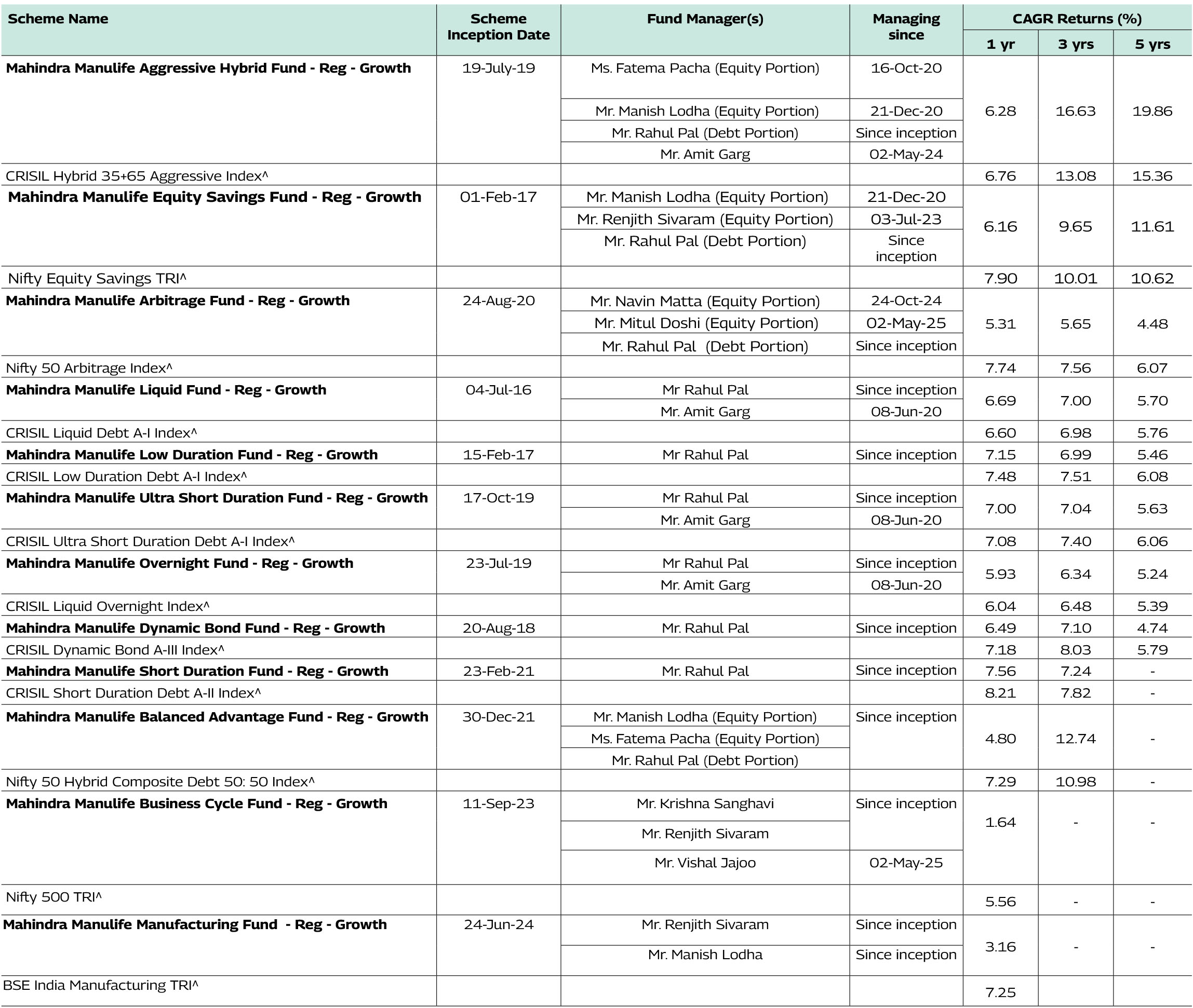 11 schemes each of Mahindra Manulife Mutual Fund. The performance data for the schemes which have not completed one year has not been provided.