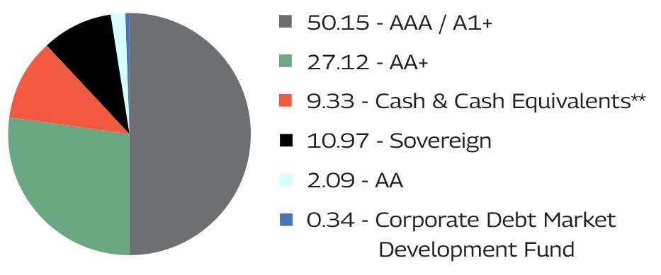 *Includes securitized debt (excluding foreign securitized debt) and debt instruments having structured obligations/ credit enhancements (such as corporate / promoter guarantee, conditional and contingent liabilities, covenants, pledge and / or Non Disposal Undertaking of shares etc) upto 35% of the net assets of the Scheme.