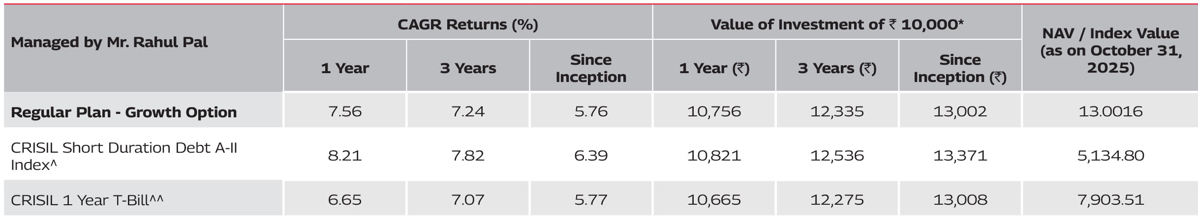 Since inception returns of the scheme is calculated on face value of Rs. 1,000 invested at inception. The performance details provided above are of Growth Option under Regular Plan. Different Plans i.e Regular Plan and Direct Plan under the scheme has different expense structure. *Based on standard investment of Rs. 10,000 made at the beginning of the relevant period.