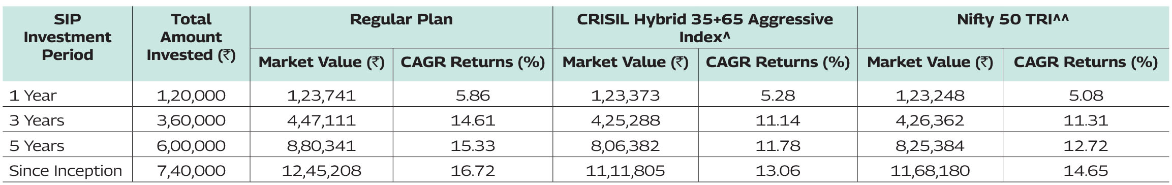 Since inception returns of the scheme is calculated on face value of Rs. 10 invested at inception. The performance details provided above are of Growth Option under Regular Plan. Different Plans i.e Regular Plan and Direct Plan under the scheme has different expense structure. *Based on standard investment of Rs. 10,000 made at the beginning of the relevant period. Ms. Fatema Pacha is managing this scheme since October 16, 2020. Mr. Manish Lodha is managing this fund since December 21, 2020. Mr. Amit Garg is managing the scheme since May 02, 2024.