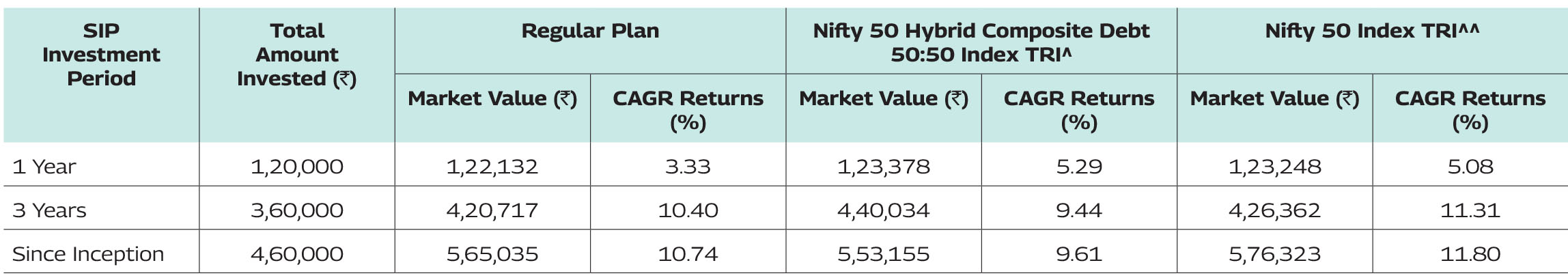 Sector | MMBAF* | Nifty 50 Hybrid Composite Debt 50: 50 TRI |