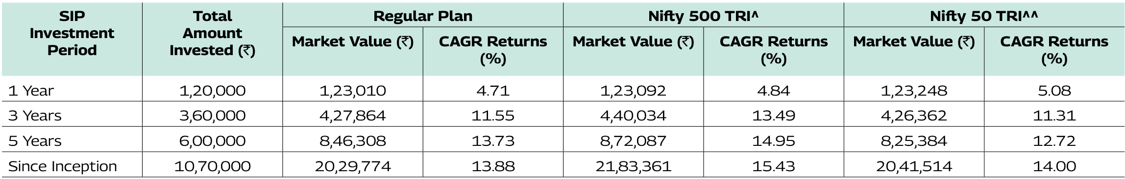 Returns greater than 1 year period are compounded annualized. For SIP returns, monthly investment of equal amounts invested on the 1st business day of every month has been considered. CAGR Returns (%) are computed after accounting for the cash flow by using the XIRR method (investment internal rate of return).