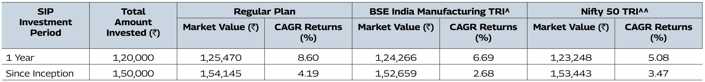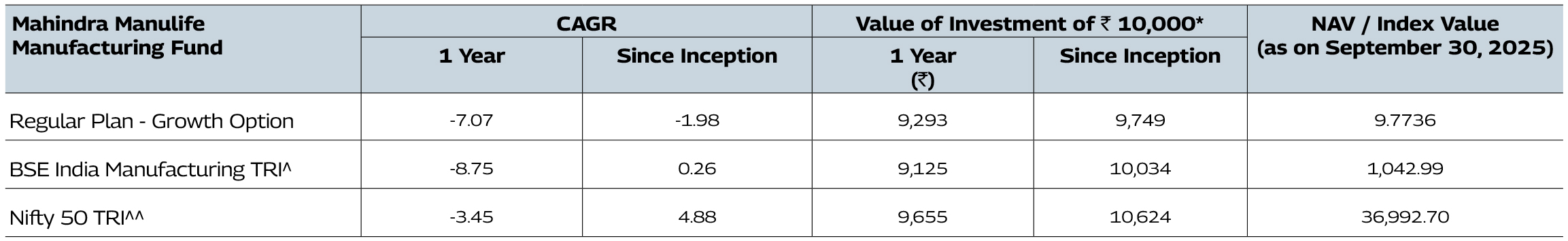 Sector | MMMF* | BSE India Manufacturing TRI |